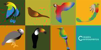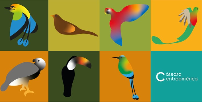 El logotipo que diseñé para la Cátedra Centroamericana está inspirado en las majestuosas aves que representan la rica biodiversidad de los seis países que conforman Centroamérica. Entre estas aves se encuentran el vibrante quetzal, el elegante mirlo pardo y el imponente águila harpía, entre otros.